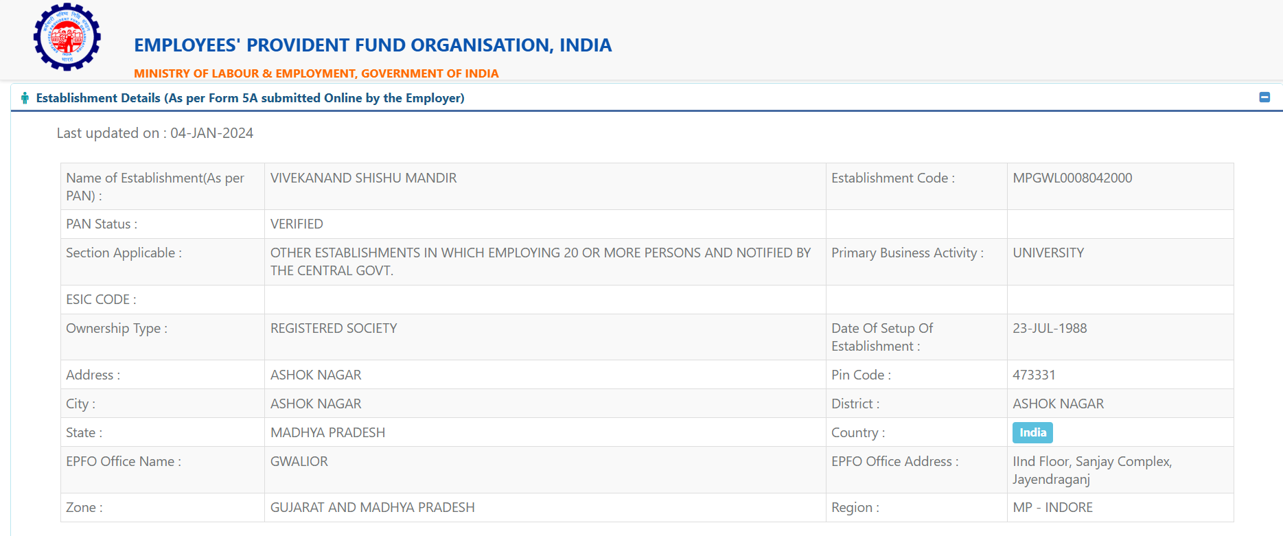 | Employee Provident Fund Registration Details-Form 5A | View More! |